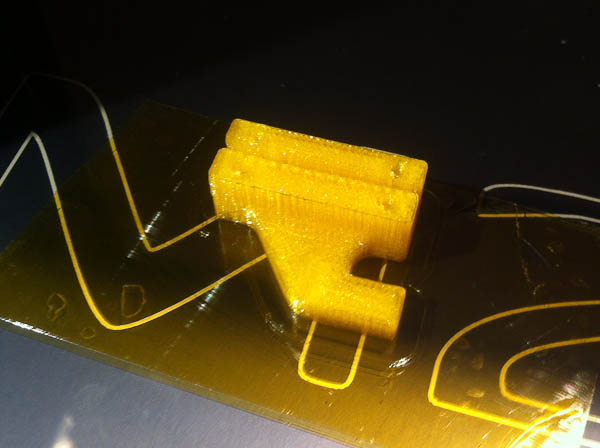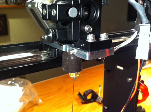 Things started to go down hill when I tried to print a new belt clamp with an extended striker. I decided to give ABS one more try because I wanted it to be strong but once again after a few layers it clogged and I had to stop printing. I tried switching spools of ABS but couldn’t get that to work either. As you can see from the above picture I started to have problems with the extruder too. I even tried switching to a PETG sample I had but I couldn’t get that to feed either.