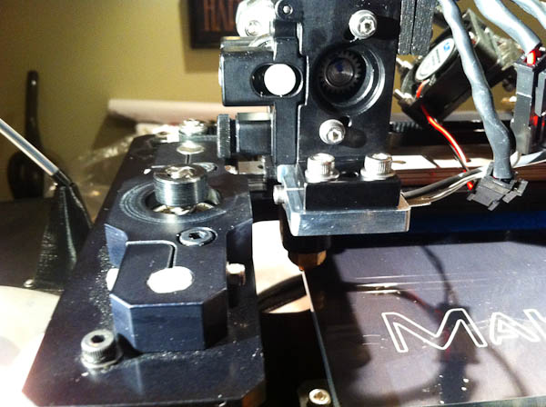 The extruder is a little bigger now with the door for the bearing and thumb screw so I will have to make a smaller Z knob also.