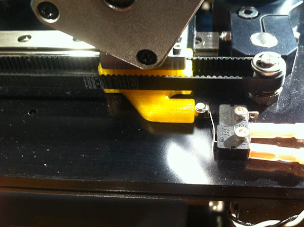 Here is the new Belt Clamp installed and it activates the end stop perfect now.