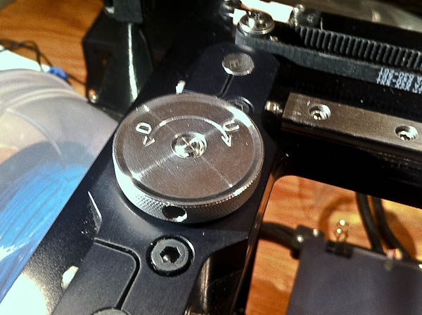 While I was on the lathe making the gap spacer I decide to make a new low profile Z Knob too to clear the thumb screw on the extruder door. I always forget which way is which so I marked it with Up and Down to make life easier.