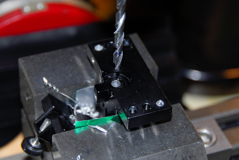 Then I drilled the holes to a depth of .365 using a #39 drill bit and taped them for a M3 x 12 screw.