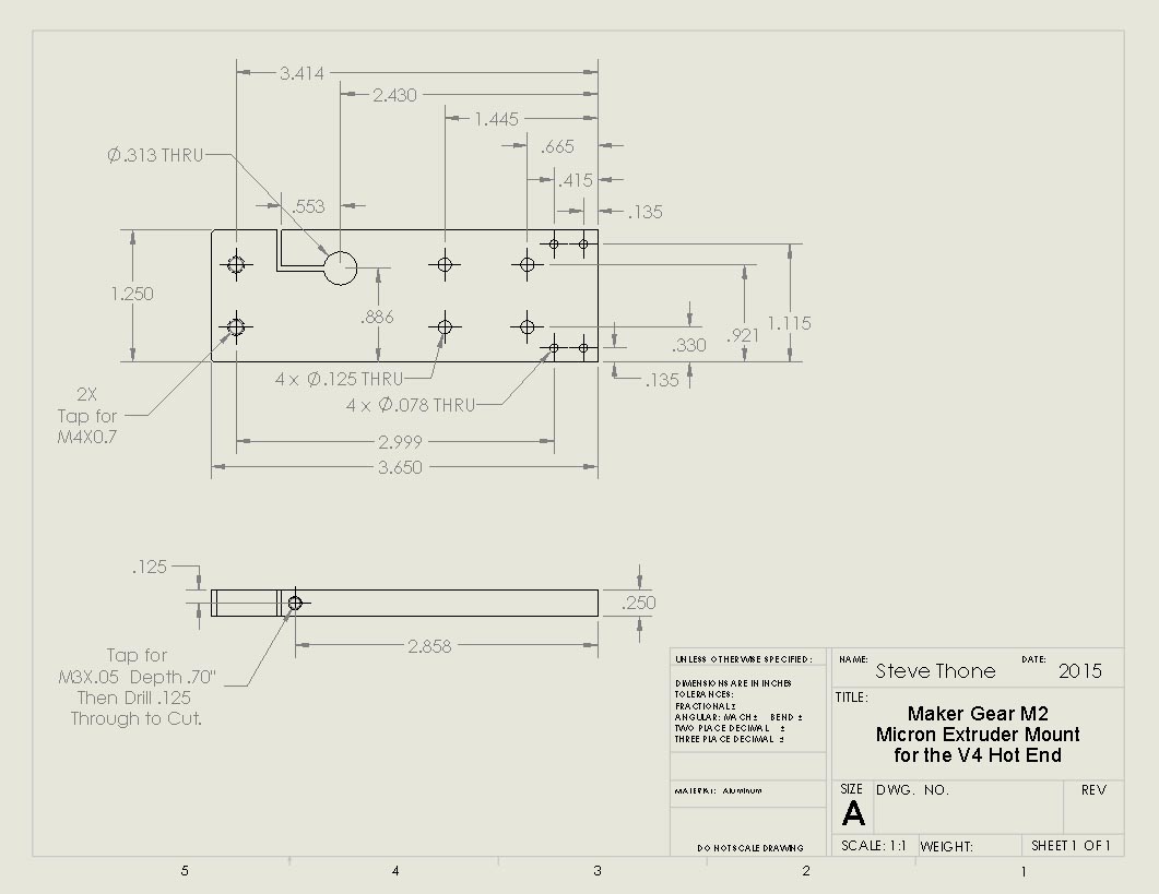 Micron sent me a link to a guy who has all ready done one of these on his M2 and he was nice enough to give me a copy of his wire stay. (No point in reinventing the wheel here.) I’ll just have to drill and tap the extruder to mount this piece.